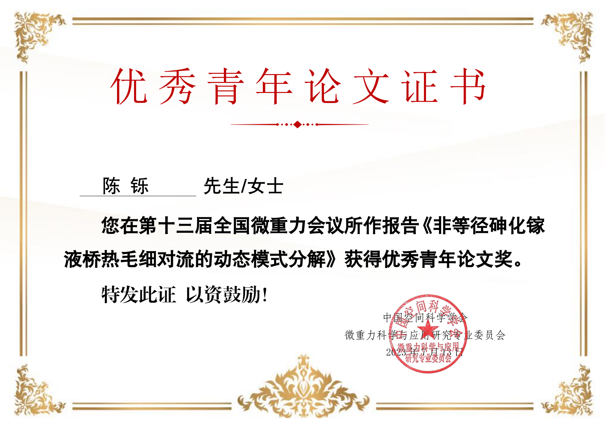 第十三届全国微重力科学学术会议暨空间材料-空间生命-微重力科学前沿交叉论坛于今年7月11日至15日在新疆维吾尔自治区哈密市成功召开。全国微重力会议已有20多年历史,会议聚焦我国在微重力科学与应用研究以及空间生命科学、空间智能制造等领域取得的最新成果,瞄准中国空间站应用发展阶段和未来航天发展与深空探测需求,促进深入交流,广泛切磋,激发灵感,凝聚目标,推动我国微重力科学与应用研究更加深入地发展。