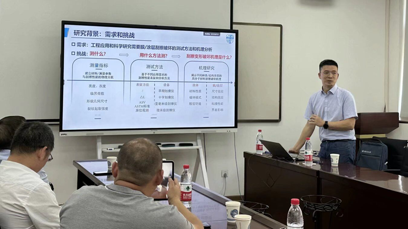 2023年8月31日,应HAHA体育邀请,西南交通大学蒋晗教授访问哈哈体育,并于上午10点半在理科楼205会议室进行学术交流,作了题为“柔性膜/涂层表面刮擦测试方法/设备及机理研究”的报告。报告由HAHA体育严波教授主持,公司教师代表及工程学部师生30余人出席听讲。