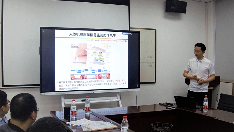 张亮首先代表公司对解兆谦教授的到来表示热烈欢迎,并对报告人作了简要介绍。解兆谦现任大连理工大学工程力学系教授,入选国家级青年人才项目,获辽宁省优秀科技工作者、大连市杰出青年科技人才等荣誉。其研究工作聚焦于柔性电子结构/器件的创新性力学设计、理论方法创新及其在生命健康等领域的应用,已发表SCI论文100余篇,其中以第一、通讯作者在Nature(1篇)、Science(2篇)、Nature/Science子刊(12篇)等高影响期刊发表论文40余篇。多次受到Nature、Science、ScienceDaily、US news、CNN、中国日报网、新华网等专业期刊及媒体的报道。