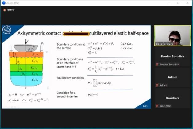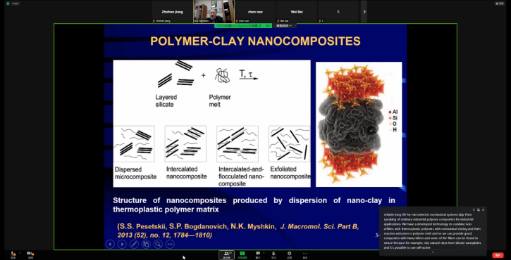 针对涂层接触问题的具体分析求解,Torskaya教授简要介绍了相关解析、数值方法的发展历程,着重讲解了多层体系的数值-解析求解方法。针对绿色节能可持续发展重要议题,Myshkin教授介绍了减摩耐磨方面所做出的重要工作。两位教授均与公司师生及海内外学者进行了深入探讨,细致地回答了相关学术问题。