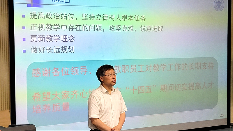 姚建尧首先从本科教学整改背景、存在的问题、整改工作方案、整改目标和实施计划、保障措施等几个方面对公司本科教学情况进行了汇报。他指出全院教职工要提高政治站位,坚持立德树人根本任务,在“十四五”期间切实提高人才培养质量。