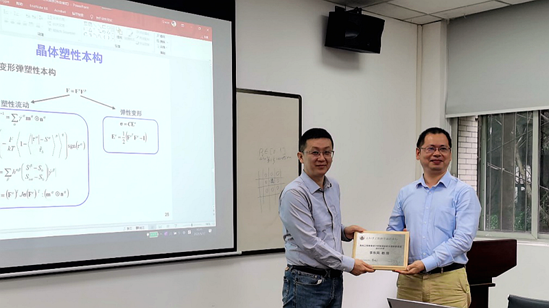 两位国内知名青年力学学者的报告引起与会师生的良好反响,报告持续近三个小时,现场学术研究氛围浓厚。在场师生与李东风教授、姚尧教授进行了深入的交流并开展了热烈的讨论。报告最后,金晓清教授分别为李东风教授、姚尧教授颁发了工程科学前沿讲坛纪念牌,向两位教授的出席以及他们对哈哈体育力学学科的关心和支持表示真诚的感谢。