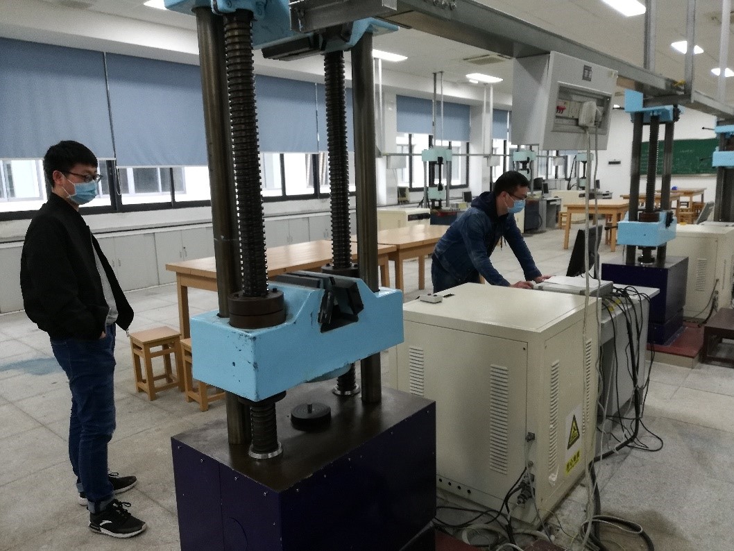 在虎溪校区重庆市力学实验教学示范中心,检查组对基础力学实验教学设备逐一开机检查,发现问题及时调试,保证开课后能正常使用。同时针对员工近期无法返校开展实验课程的情况,检查组积极讨论,初步制定了包括线上理论教学、现场实验过程讲解录制、员工线上完成实验报告等预案。